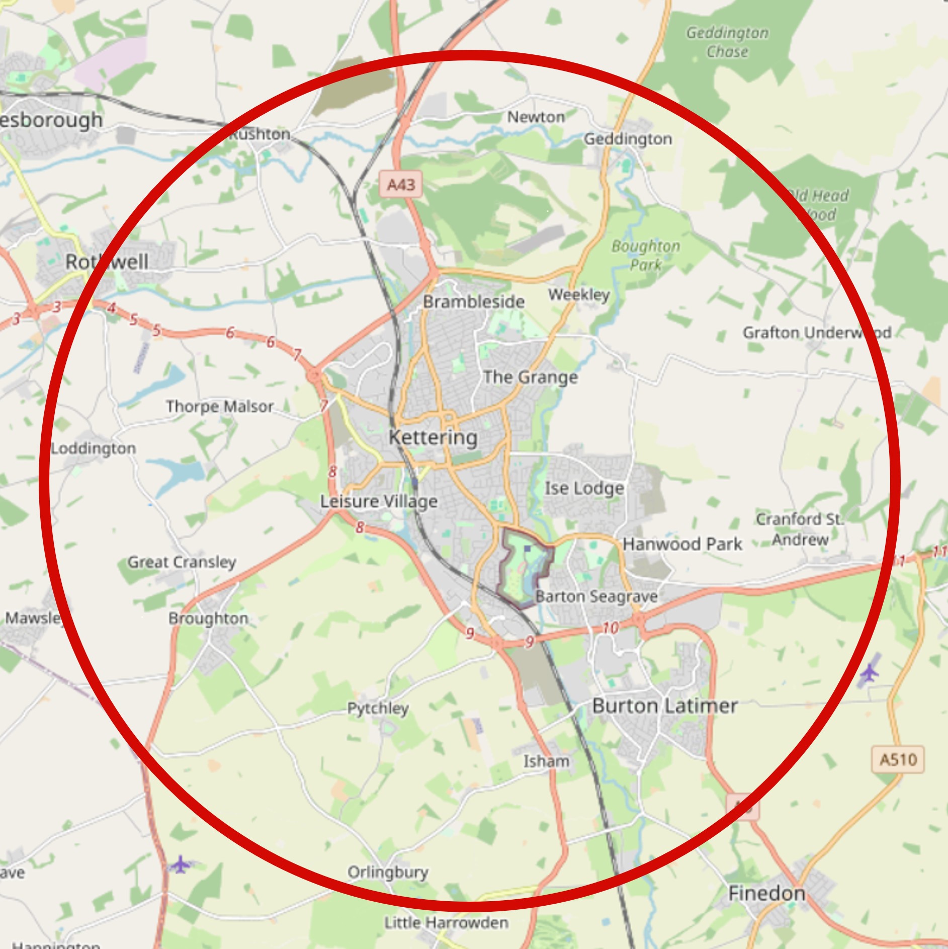 We cover Bishop Stopford School, Southfields School, Tresham College (Kettering), Kettering, Barton Seagrave, Burton Latimer, Isham, Orlingbury, Pytchley, Broughton.
